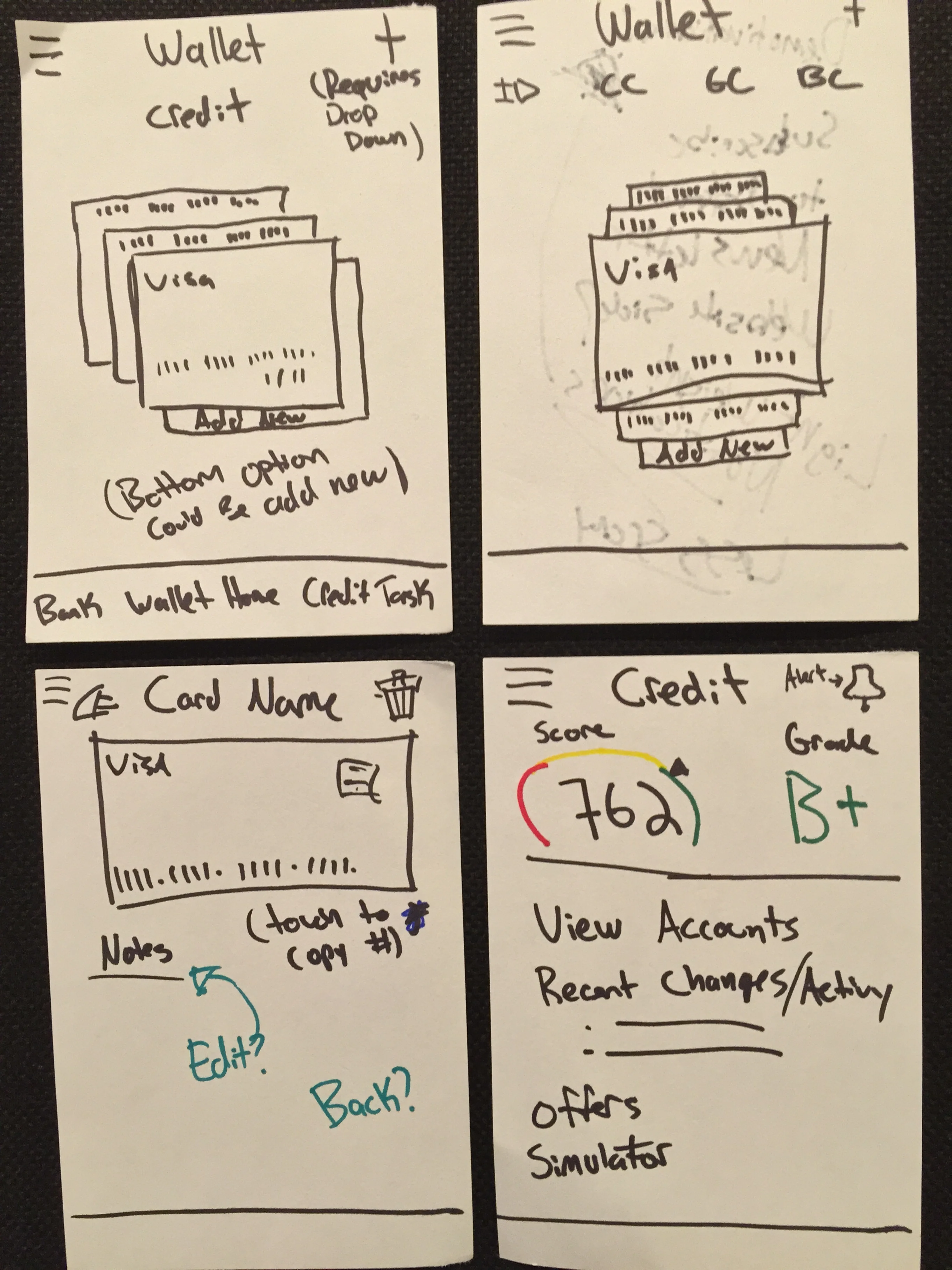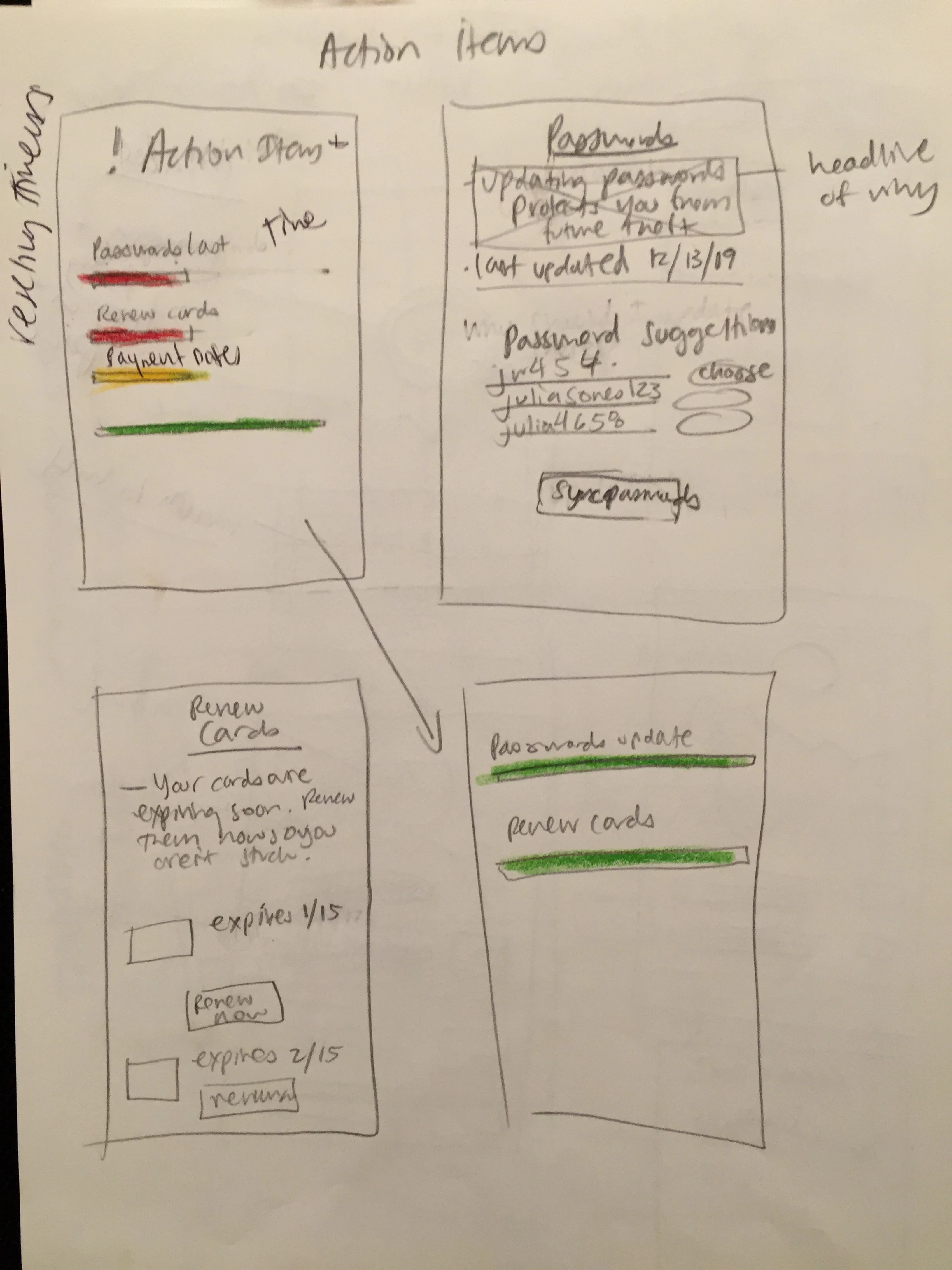 After conducting research, we wanted to explore how users would complete tasks related to identity theft protection. We looked closely at how people manage their credit, review bank accounts and use their wallet to gauge where users stumble and struggle and how we could make it better.